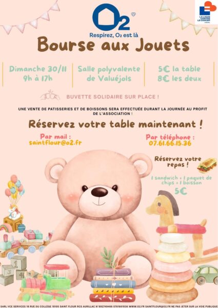 L’association O2 de Saint-Flour organise une bourse aux jouets à Valuéjols : bonne idée avant les fêtes!