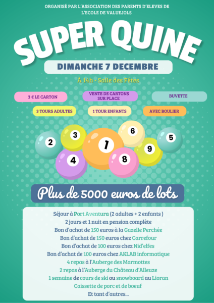 le Quine approche, réservez votre date ! Vente de cartons sur place…